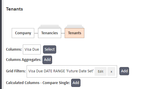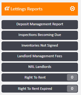 By default, Right To Rent looks at any Visa Due in the future while Right to Rent Expired looks for any that have a past date. If you want to change the filters to only search a certain period, click the cog on Lettings Reports and go into the report you wish to amend.