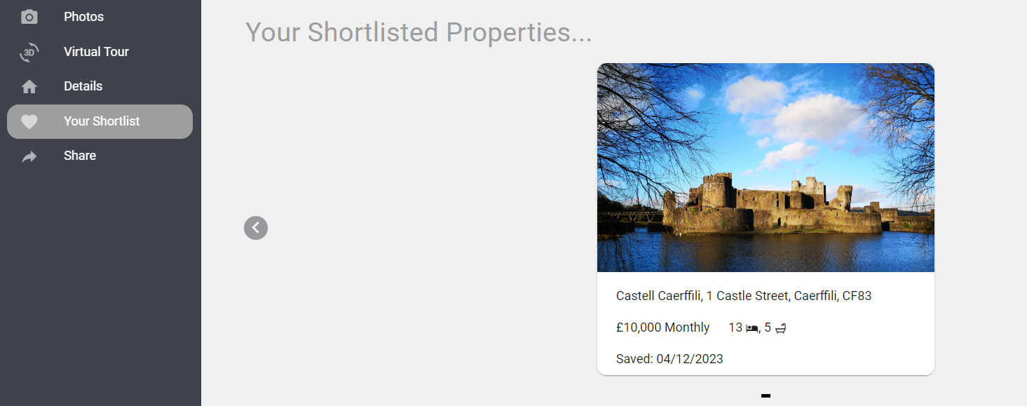 The online brochure is equipped with features that allow you to add properties to your shortlist. This shortlist is prominently displayed at the bottom of the page and on the left-hand sidebar for convenient access.