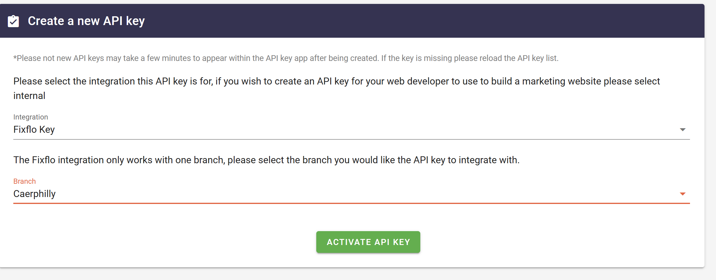 - The integration type is set to "Fixflo Key"