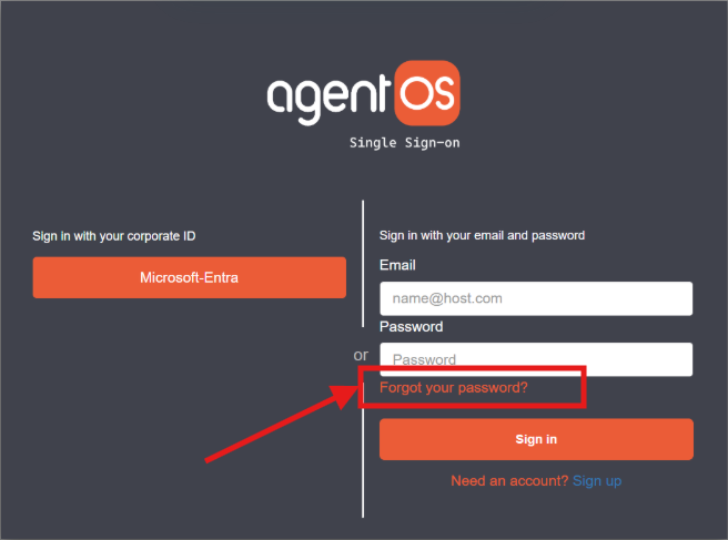 Log in as usual, and please click 'Setup AgentOS Single Sign On".