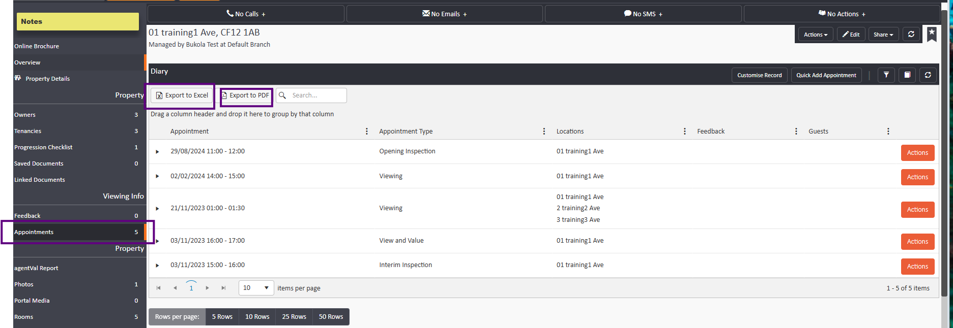 Within the Appointments section, you can export the list for easier sorting or sharing: