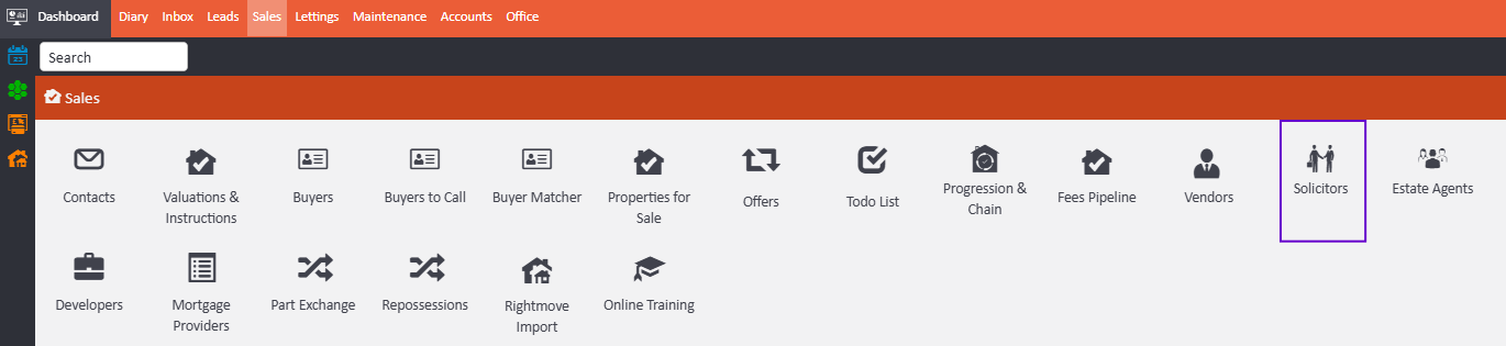 To add a solicitor to the system, Click on 'Sales' on your dashboard