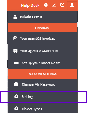 2. Click 'Settings' on the dropdown: