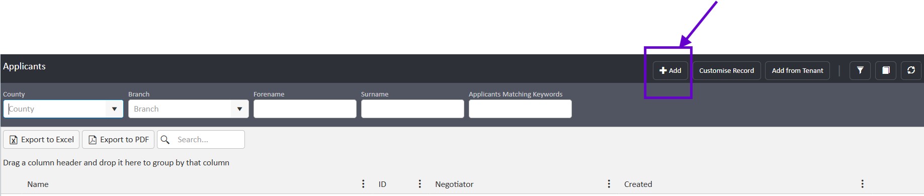 You will also be able to turn these applicants into tenants when you wish to link them to a tenancy which you have let out to them.